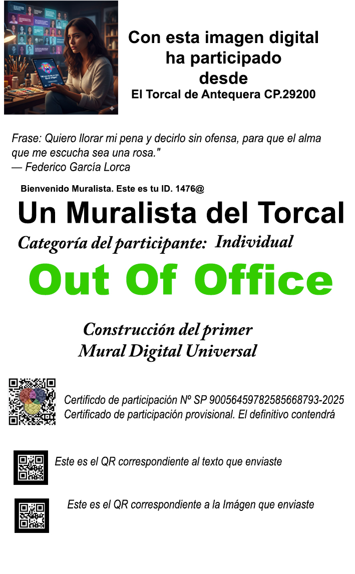 Este participante, que ha elegido el pseudónimo de «Un Muralista del Torcal» para su certificado, nos demuestra que el anonimato puede ser una poderosa forma de expresión. Al igual que muchos que han decidido ocultar su nombre en el certificado (cuya identificación fehaciente es guardada de forma segura por el sistema), su voz se une a la nuestra para formar el tejido del Mural, demostrando que la autenticidad no reside en la fama, sino en el mensaje.